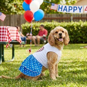 Get your furry friend ready for the 4th of July! This adorable, festive pet dress is the perfect outfit for Independence Day celebrations, summer parades, or backyard BBQs.