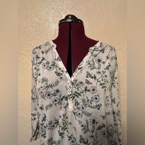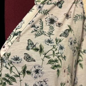 H&M Blouse with Green and Pink Floral Design with butterflies Size Large