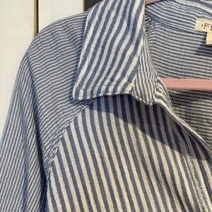 Torrid Festi Cotton Button Up Relaxed Tunic in Blue Stripe Size 1