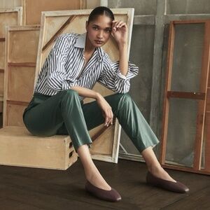 BIRDIES The Crane Leather Ballet Flats Square Toe Maroon Wine Size 8.5