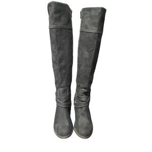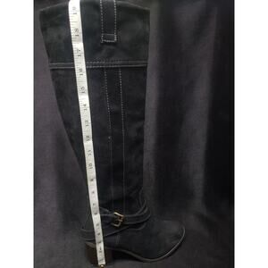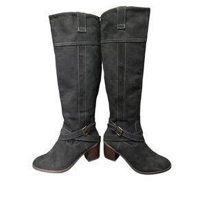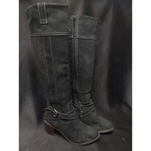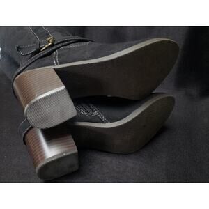 New Direction Black Suede Like Material Buckle Harness Strap Heeled High Boots. Good preloved condition.