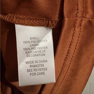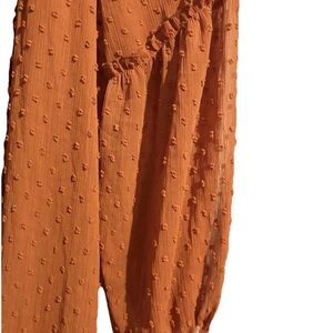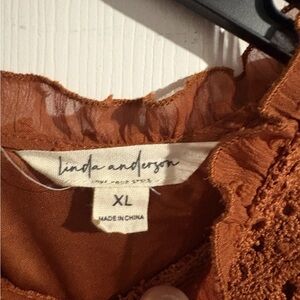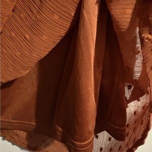 Linda Anderson Rust Orange Swiss Dot Lace Yoke Long Sleeve Bohemian Office Dress