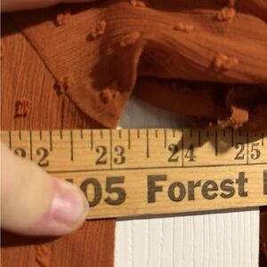 The dress features a flattering mock neck with balloon sleeves and a ruffle accent, adding a touch of bohemian flair to the overall look. Made from polyester lace fabric, this midi dress is machine washable and lined for added comfort. The vibrant orange color and polka dot pattern make it a standout piece for any season, whether it be winter, summer, fall, or spring. Perfect for women looking for a chic and trendy addition to their wardrobe. Pit to Pit 23" shoulder to bottom 37"