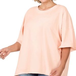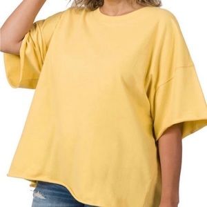ZENANA Oversized Raw Edge Drop Shoulder Top