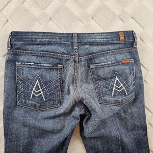 7 For All Mankind A Pocket Boot Cut Jeans Womens 31 Dark Wash Whiskered Cowgirl
