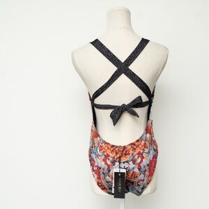 Beautifully designed one-piece swimsuit by Aqua Blu Australia, crafted to smooth, contour, and sculpt the body. This style features a flattering deep V-neckline with a front cutout and a convertible tie-back design that can be worn over the shoulders or crossed at the back. Made from an ultra-soft, supportive fabric that feels lightweight and buttery against the skin, with built-in structure for comfort and confidence.