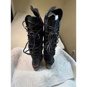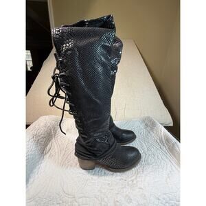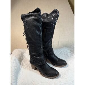 NIB Freebird Women's 9 Black Coal Snakeskin Knee High Leather Boots Designer