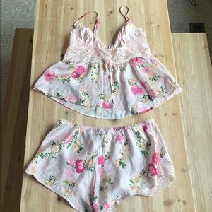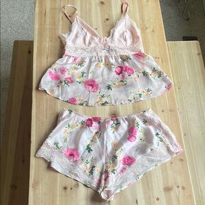 Victoria's Secret Floral Lace Trim Pink Women's Camisole & Short Sleep Set