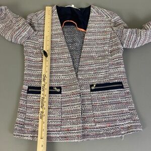 Keywords: Veronica Beard blazer, tweed jacket, size 2 blazer, womens blazer, career wear, business casual, tweed jacket women, open front blazer, pockets blazer, multicolor blazer, designer blazer, jacket, outerwear, formal blazer, work blazer