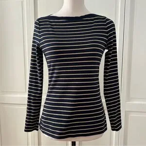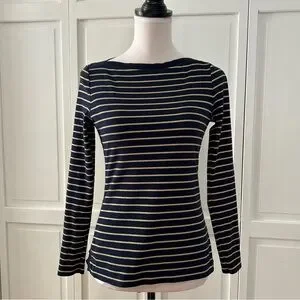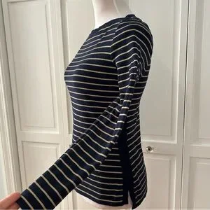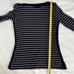 Lauren Ralph Lauren Navy and Gold Striped Long Sleeve Top PM