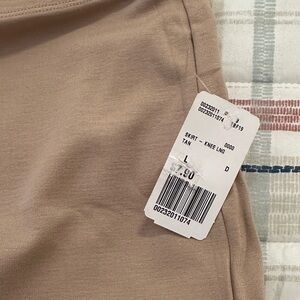 This elegant tan skirt is perfect for any occasion. Its versatile color makes it easy to pair with any top.