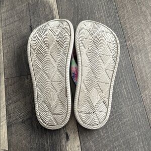 Chaco Women’s White Flip Flops with Rainbow Tie-Dye Straps
