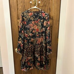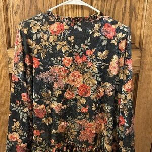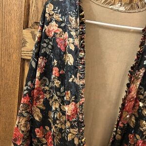 Chic dark blue pink floral velvet cardigan with vibrant design. Perfect for layering and adding flair. Great used condition! Size medium.