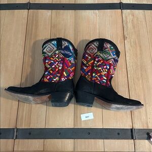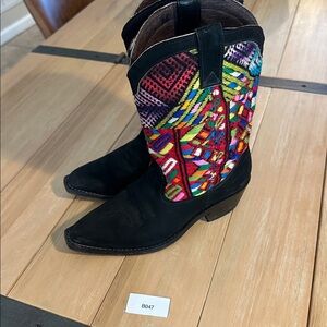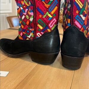 Gorgeous craftsmanship with leather lining, Leather sole, almond toe, and stacked heel. Signed on the sole by the artisan Jorge Leonel. Super well made- you can tell by the fit and stability when wearing. High-quality, boutique-style boho cowgirl boots with stunning detailing.