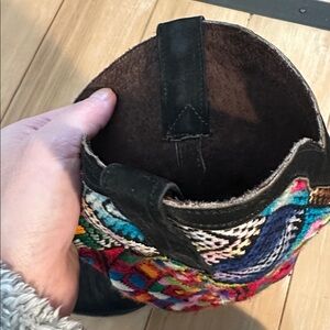 Beautiful handmade full leather upper, leather soles, and a vibrant embroidered textile shaft.