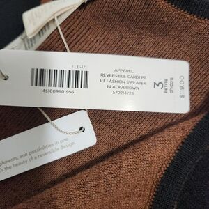 Chico's Black & Brown Open Front Longline Reversible Cardigan Size 3 Petite NWT