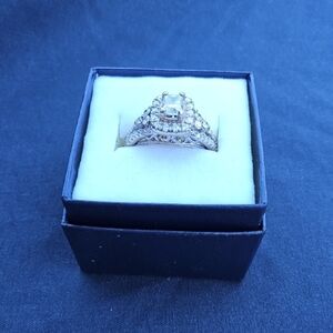 White Gold Diamond HALO Ring with Intricate Band