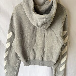 Off-White Grey Hoodie with Diagonal Sleeve Stripes