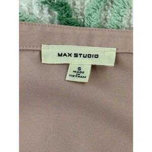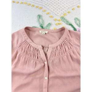 Max Studio Dusty Rose Pink Pleated Smocked V-Neck Blouse Top 7701A31 Small