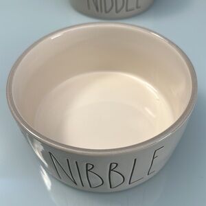 New with no damage! This is a set of gray medium sized Rae Dunn “NIBBLE” dog dishes. They have a gray exterior and a white interior. These dishes are ceramic. They are approximately 5.5 inches in diameter and 2.5 inches deep.
