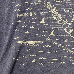 Casual, worn in, graphic tee, t shirt, short sleeve, round neck, ocean, island, map, pacific rim, whales, Vancouver island, fish, destination, trip, blue, soft, comfortable, everyday, lightweight