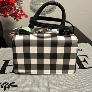 Betsey Johnson Mini Evie Black Plaid Crossbody with Pink Charm NWT