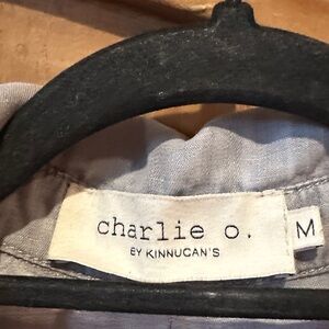 Light wash button-up blouse with fringe hem and front patch pockets. Soft, casual fabric for everyday layering. Versatile light gray-blue color pairs easily with jeans or skirts.