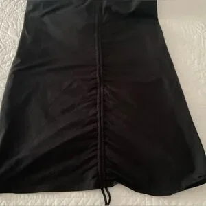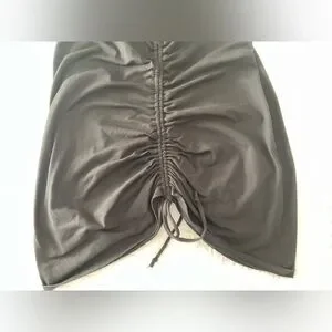. Adjustable length with side ruching and ties.