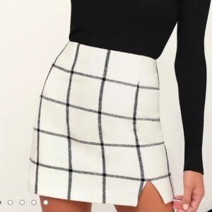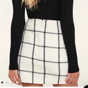 Lulus Spence Plaid White and Black Mini Skirt size Small
