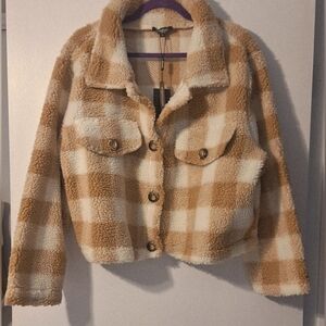 Cozy checkered teddy jacket. Perfect for casual wear, super cute and comfy. Bust 25" Length 22"