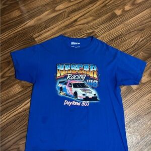 Exciting blue Nascar tee for young race fans. Features bold Daytona 500 graphics and racing car print.