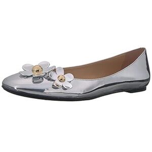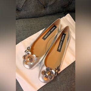Marc Jacobs Metallic Silver Flats with Gold Floral Accents