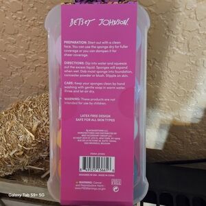 Vibrant pink beauty sponges by Betsey Johnson. Latex-free and safe for all skin types. Comes with a reusable storage container.