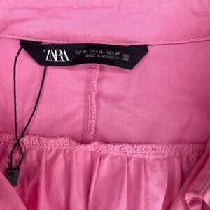 Zara Women's Cotton Poplin Pink Long Sleeve Shirt Dress Barbiecore Plus Sz XL