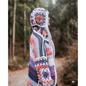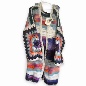 Rare One Of One Merino Wool Hand Crochet Luxury Granny Hooded Cardigan L-XXL