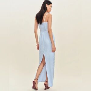Chic and stylish light blue maxi dress. Perfect for elegant occasions. Bought as a bridesmaids dress and switched color palettes so no longer need