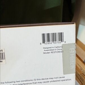 Modern Hatch alarm clock with digital display. Features white and gray design.