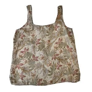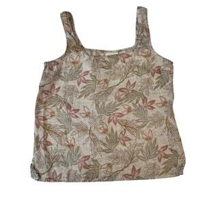 Cynthia Rowley Linen Floral Tank Top Women’s Large Botanical Resort Coastal