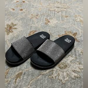 Rhinestone Slide Sandals - Black with Silver Sparkle