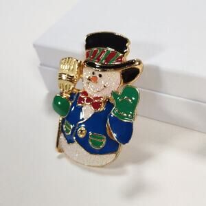 Vintage 90's Enamel SFJ Signed Waving Snowman Brooch