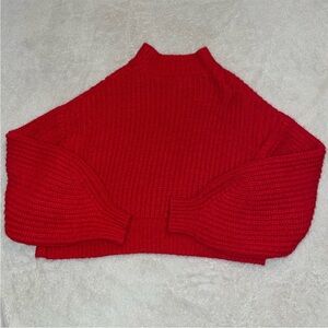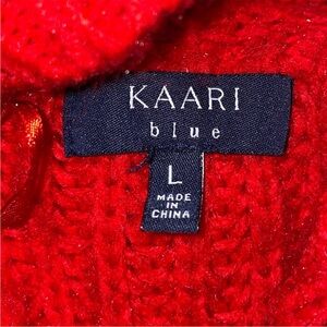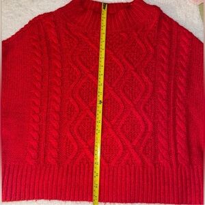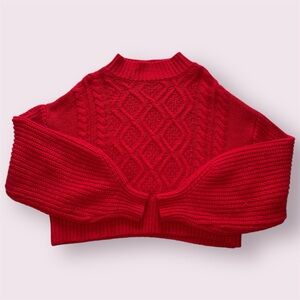 Kaari Blue Red Cable-Knit Cropped Cowlneck Sweater
