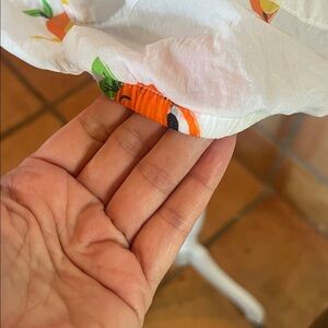 Features playful orange and white pattern.