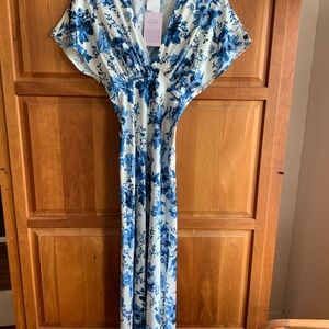 Anthropologie BHLDN Label, Blue & White Floral Long Dress, size 0, side zip