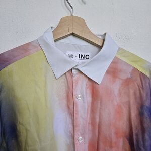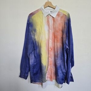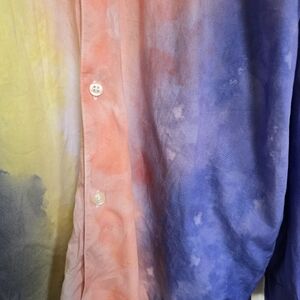 Allen Onyia for INC Watercolor Pastel Long Button Down Blouse Purple Yellow L