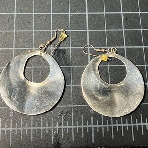 Vintage Mexico Alpaca Red enamel with abalone Floral Hoop Earrings