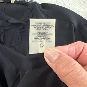 Elie Tahari Black Scalloped Blouse 100% Silk Size XL