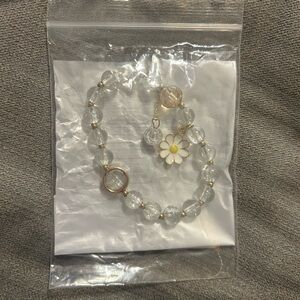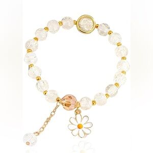Gold Daisy Charm Beaded Bracelet - Clear and Peach