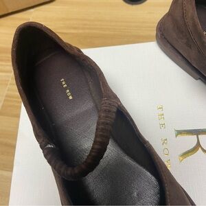 The Row Dark Brown Suede Mary Jane Square-Toe Flats