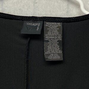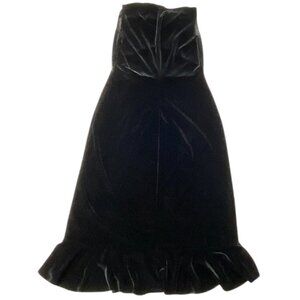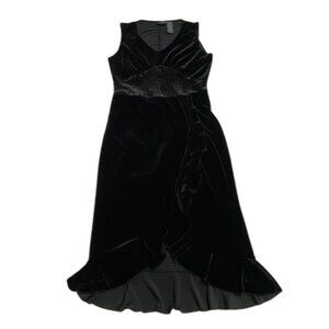 Vintage Studio V Neck Lace Waist Ruffle Hem Wrap Dress M Black Velour Sleeveless