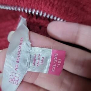 No Boundaries Size Juniors XXL (19) Burgundy Half Zip Pullover Sweater. Chunky Chenille Waffle Knit. Long Sleeve. High Collar with 1/4 Zip. Excellent Used Condition, No Holes, Rips, Stains or Snags. Please refer to measurements in photos to ensure proper fit. Shown on size 4-6 Mannequin.